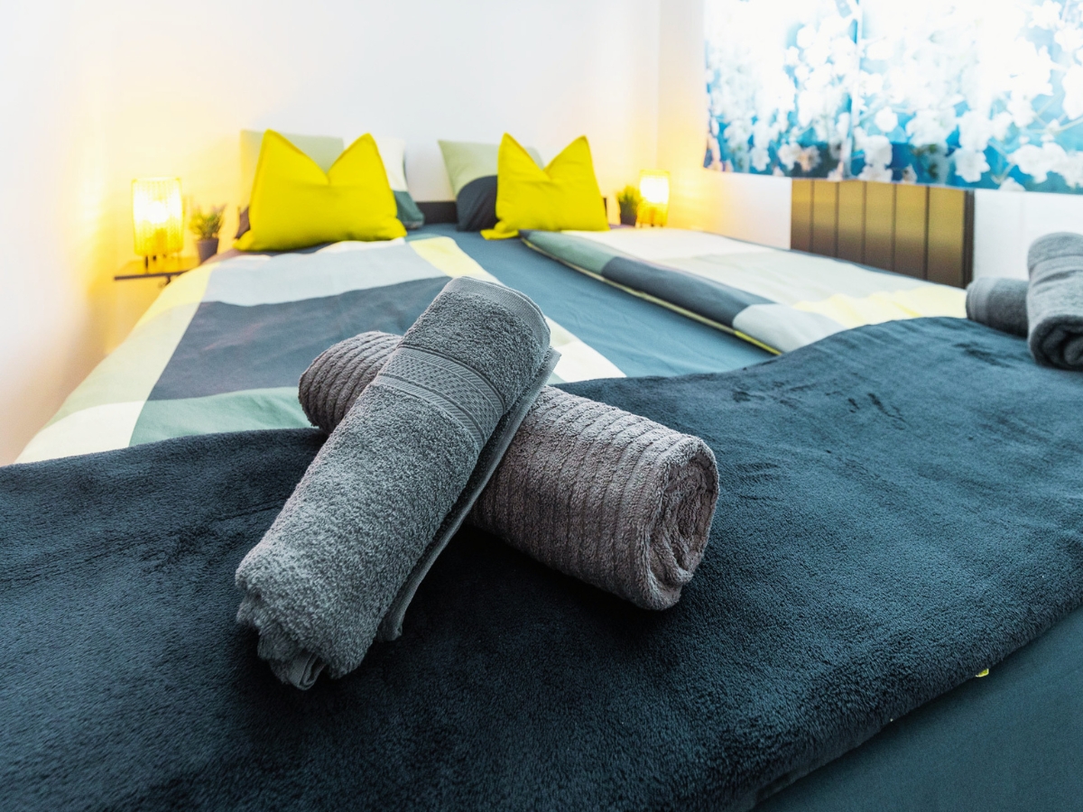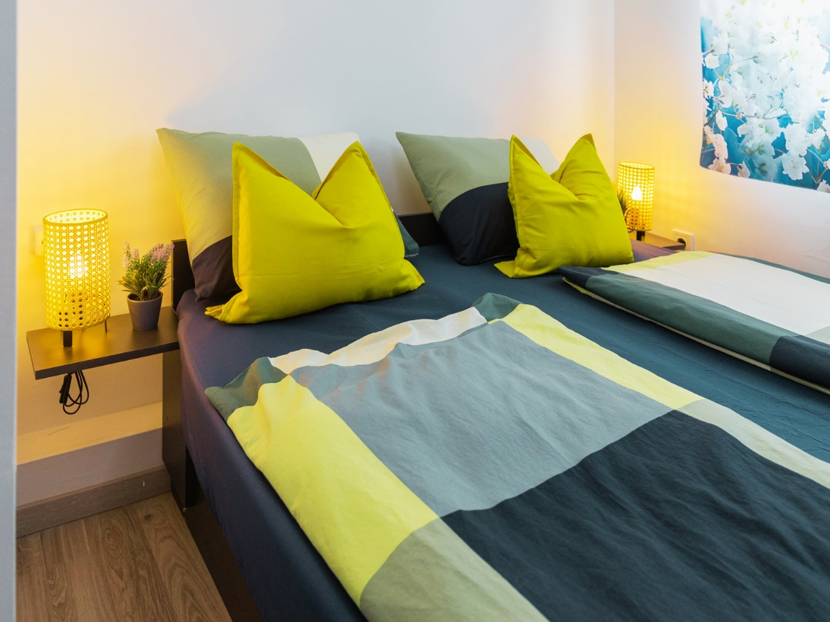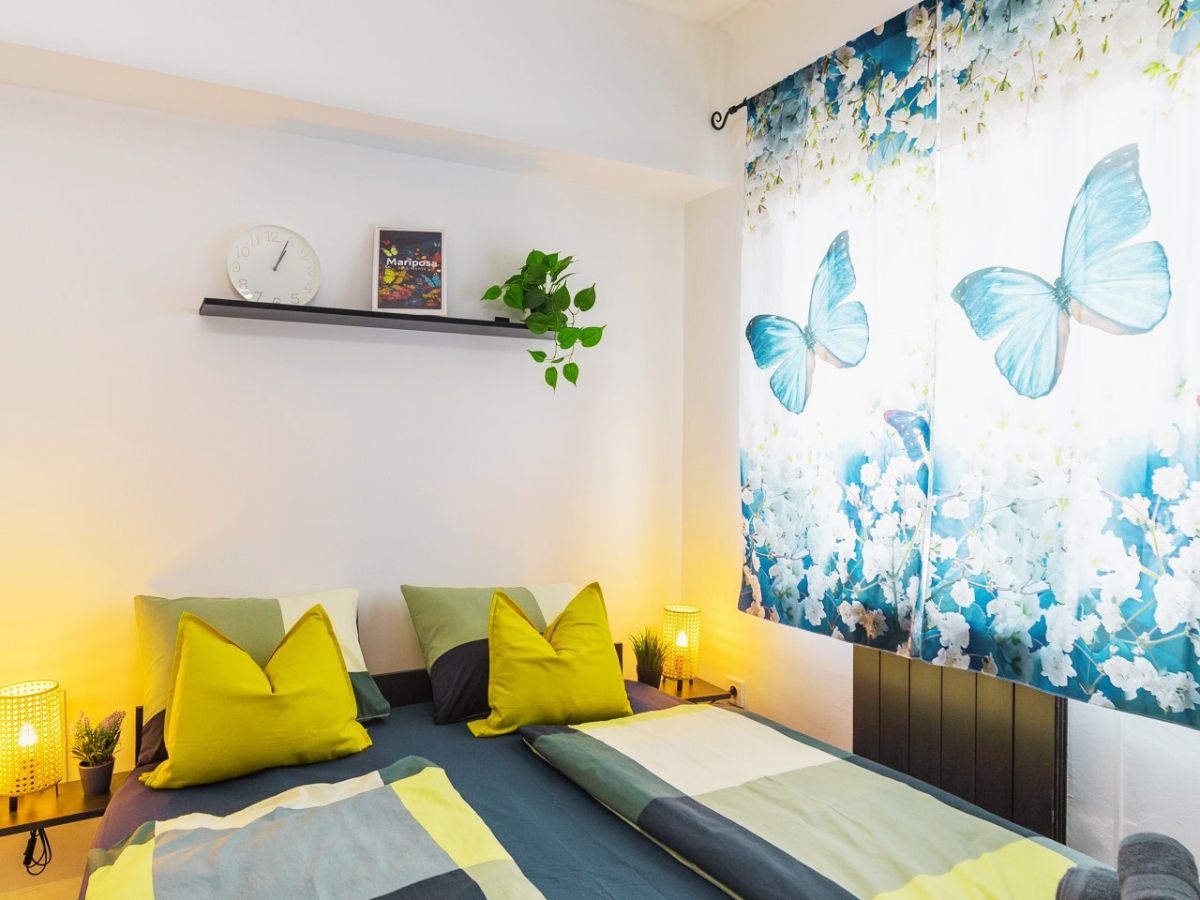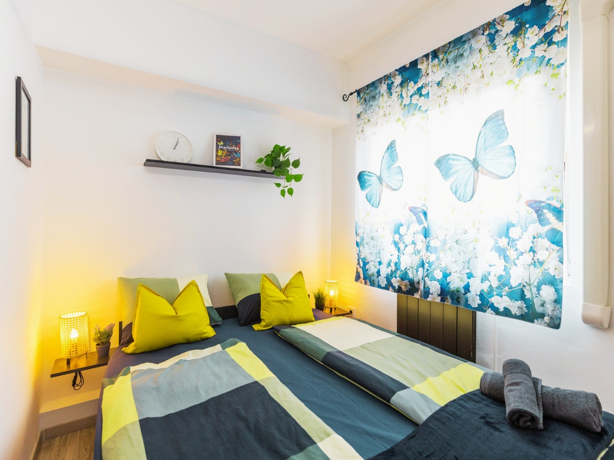 A szobĂĄban egy kĂ©nyelmes, 140Ă200 cm-es franciaĂĄgy talĂĄlhatĂł, amely legfeljebb kĂ©t felnĆtt