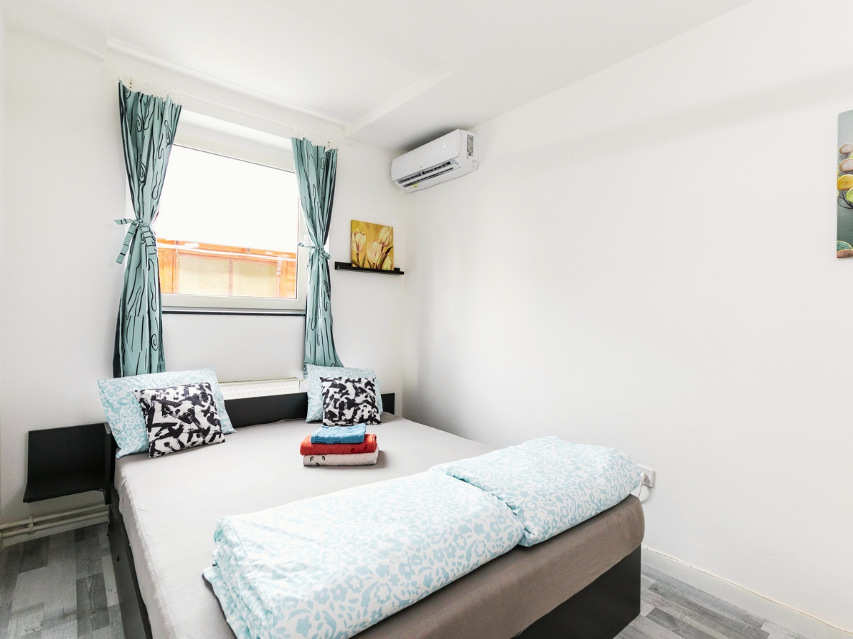 A szobĂĄban egy kĂ©nyelmes, 160Ă200 cm-es franciaĂĄgy talĂĄlhatĂł, amely legfeljebb kĂ©t felnĆtt