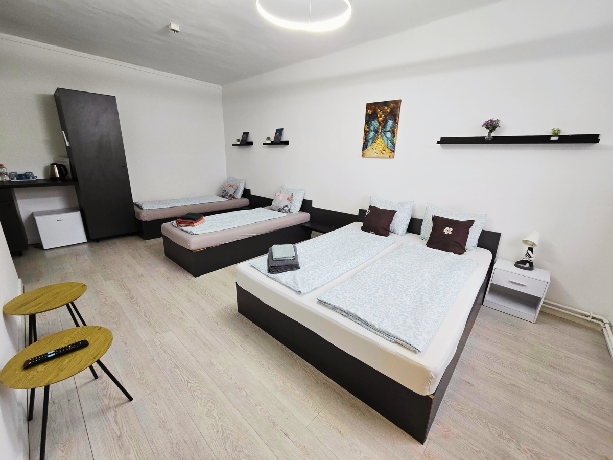 KĂ©nyelmes, franciaĂĄgyas szoba kĂ©t egyszemĂ©lyes ĂĄggyalâ maximum 4 fĆ rĂ©szĂ©re.