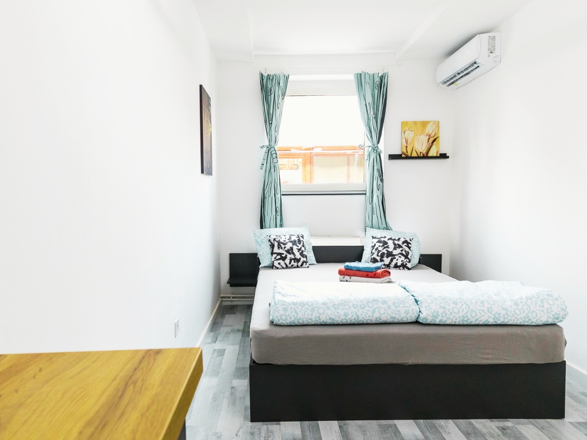 A szobĂĄban egy kĂ©nyelmes, 160Ă200 cm-es franciaĂĄgy talĂĄlhatĂł, amely legfeljebb kĂ©t felnĆtt